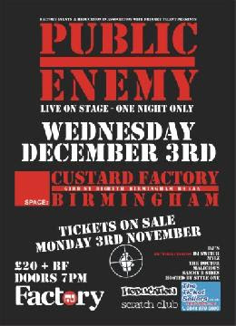 - I’d very much like to see Public Enemy at the Custard Factory in December.