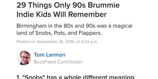 Tom Lennon29 Things Only 90s Brummie Indie Kids Will Remember (BuzzFeed)