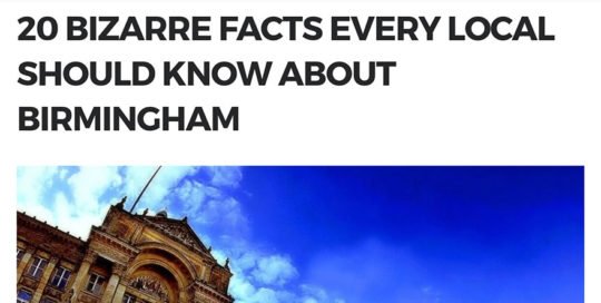 Tom Lennon20 bizarre facts every local should know about Birmingham WOW247, 5th February 2016